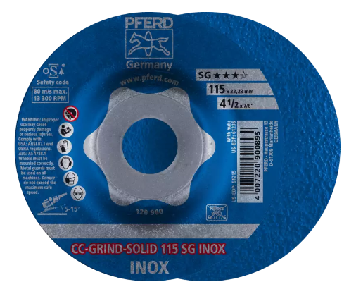 Pferd 61238. 7" CC-GRIND®-SOLID - 5/8-11 Thd. - SG INOX. Comes 10 to a Pack, Please Order in Quantitites of 10