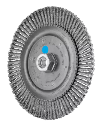 Pferd 82728. 6-7/8" OD stringer bead wheel brush 76-knots - .020" stainless steel wire, 5/8-11 thread. Comes 10 to a Pack, Please Order in Quantitites of 10