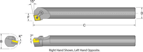 54997 S32V-MCKNL-4. Neg 80DEG Diamond Boring Bar LH. Style K, Neg 15DEG CNM_ 1/2 I.C.