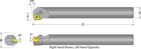 55101 S20U-MSKNL-4. Neg Square Boring Bar LH. Style K, 15DEG SNM_ 1/2 I.C.