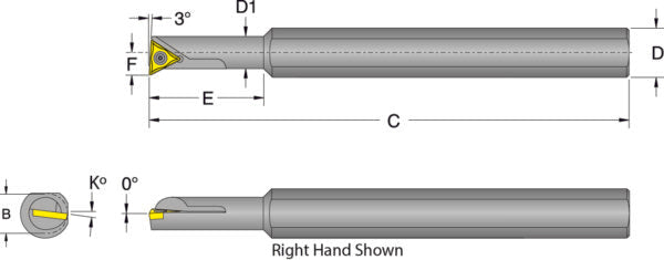 55726 S08H-STUCR-1.2-3. Mini Pos Triangle BoringBar RH. Style U, Neg 3DEG TCMT 5/32 I.C.