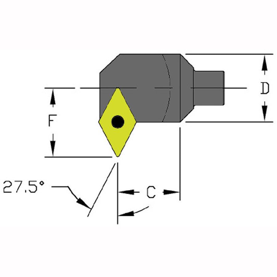 Modular 1.000" x 1.000" Boring Head 1.450" Min Bore to hold a Positive DCMT 32.51 at 27.5° Lead (Right Hand) Coolant Thru.