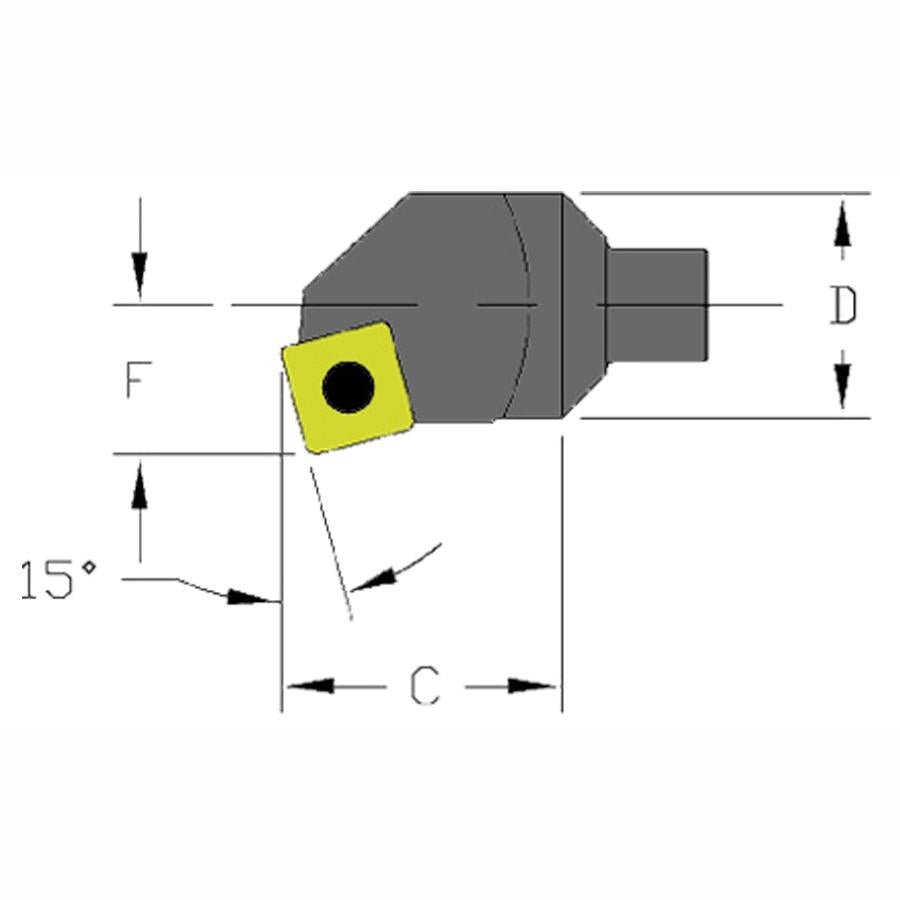 Modular 1.000" x .935" Boring Head 1.185" Min Bore to hold a Positive SCMT 432 at 15° Lead (Right Hand) Coolant Thru.