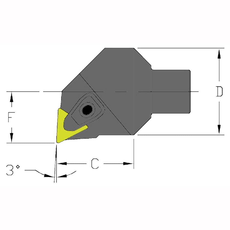 Modular 2.000" x 2.030" Pullback Clamp Boring Head 2.400" Min Bore to hold a Negative TNMG 432 at -3° Lead (Right Hand) Coolant Thru.