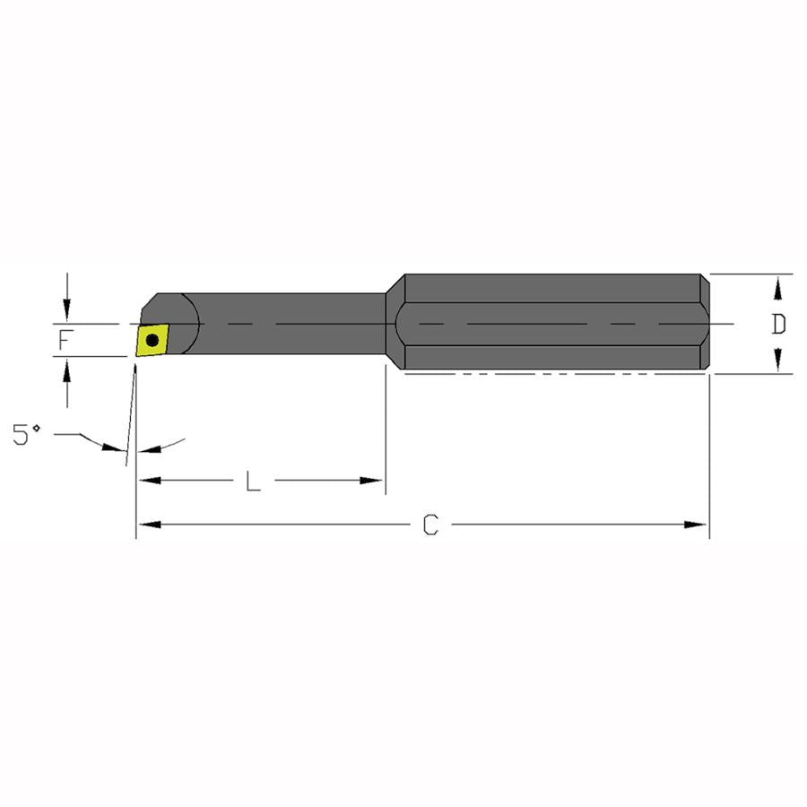 Steel .625" x 4" Reduced Neck Boring Bar 1.500" Neck Length .450" Min Bore to hold a Positive CDGW 1.510 at -5° Lead (Right Hand) No Coolant.