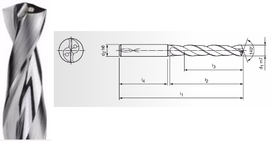 Mapal 9/64" 5XD Carbide Coolant Thru Drill for Aluminum