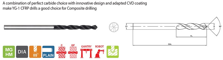 UDM5A1ZA0156 5/32 x 5/32 x 1 x 4 CFRP HAND DRILL REAMER STACK WITH PILOG HOLES 2FL NON COATED