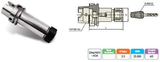 AQ022C HSK63A-EMH5/16C-2.56 DUAL CONTACT END MILL HOLDER (SPRAY NOZZLE TYPE)