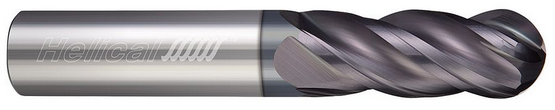 Helical 1/8" Diameter x 1/2" LOC x 2-1/2" OAL x 4 Flute Ball Nose APLUS Coated End Mill