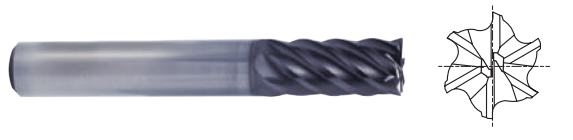1/2(R.090) x 1/2 x 1-1/4 x 3 V7 PLUS A 6FL MULTI HELIX CR PLAIN SHANK END MILL
