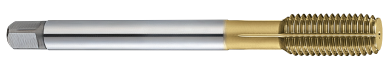 YG M16X2 D12 Synchro TIN Coated PM Bottoming Form Tap with 2-3 Pitch Lead. Can be run at 2-3 times faster in a Synchro Tap Holder but will also improve Tap Life in a Rigid Holder at Same Speed.