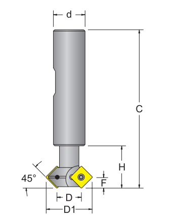 65418 C45-150-SD09-100 Dorian Tool Dbl 45DEG Indexable Chamfer Mill. 1" Shank, 1-1/2" Cut Dia