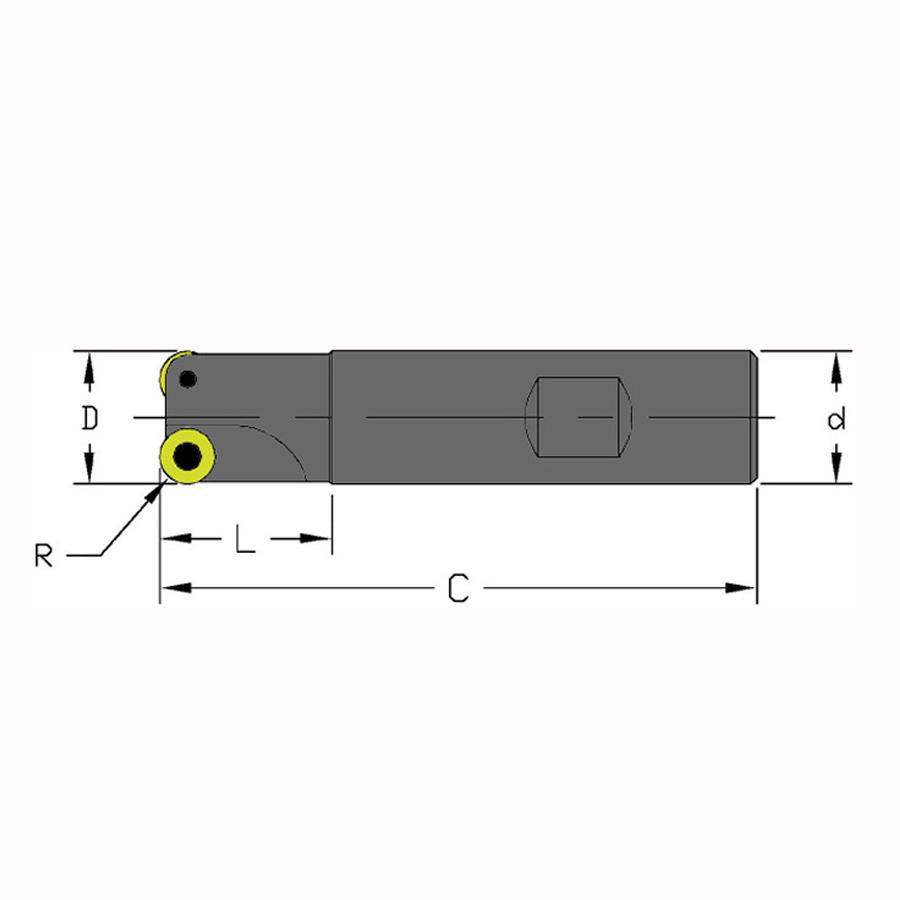 1.000" x 3.380" Indexable Round End Mill to hold (2) RCKT 10T3 .750" Shank Diameter 1.500" Cutting Depth .197 / 5mm Insert Radius No Coolant.
