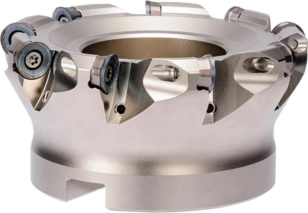 Kyocera MRX 100R129T RAD-6 Series, 9 Flute, Inch Bore Diameter, Radius Face Mill with a 100.00mm Cutting Diameter for Shouldering, Pocketing, Facing, Ramping Applications