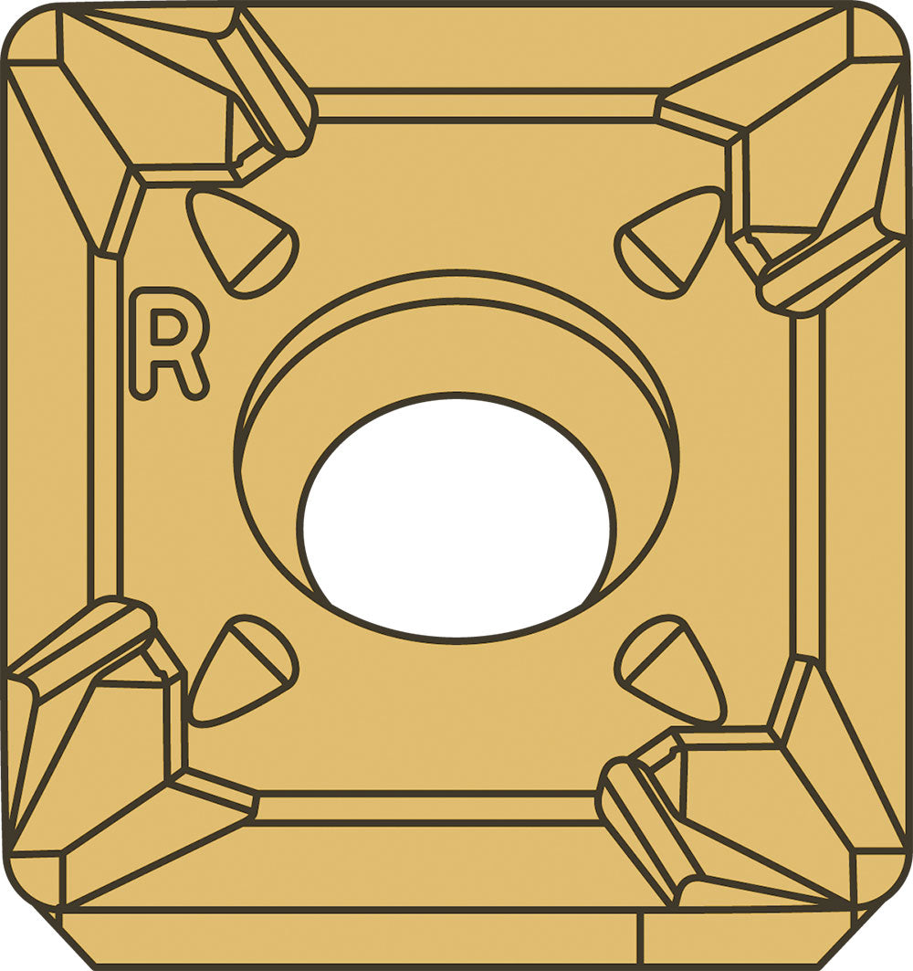 Kyocera SPCT 10T308ERSD PR0725 Grade PVD Carbide, Square, Positive Rake Angle, Right-Hand Milling Insert for Roughing in (P) Carbon/Alloy Steel, (M) Stainless Steel, (K) Gray Cast Iron, (K) Nodular Cast Iron, (S) Heat-Resistant Alloy, (S) Titanium Alloy