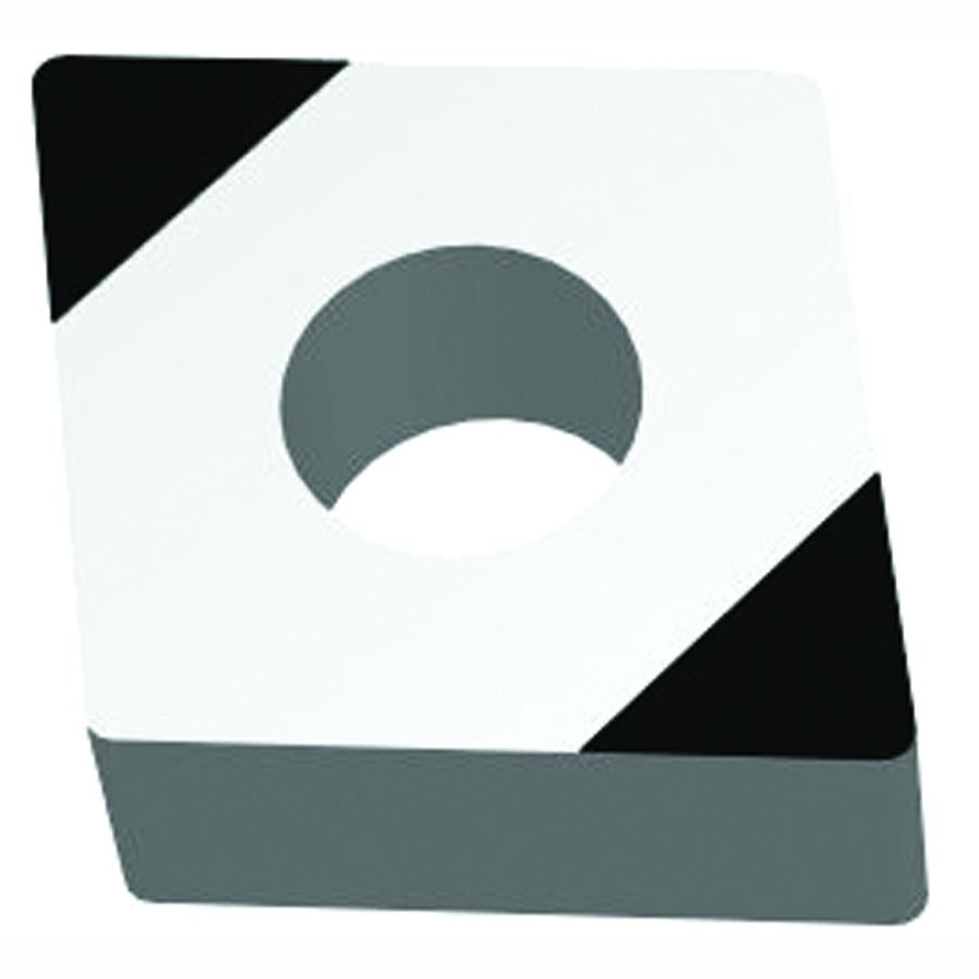 80° Diamond CBN Insert 0° Negative Clearance Angle with hole, without Chipbreaker .500" Inscribe Circle Size 3/16" Thickness .015" Corner Radius UD2CBN Grade 2 Corner Tips.