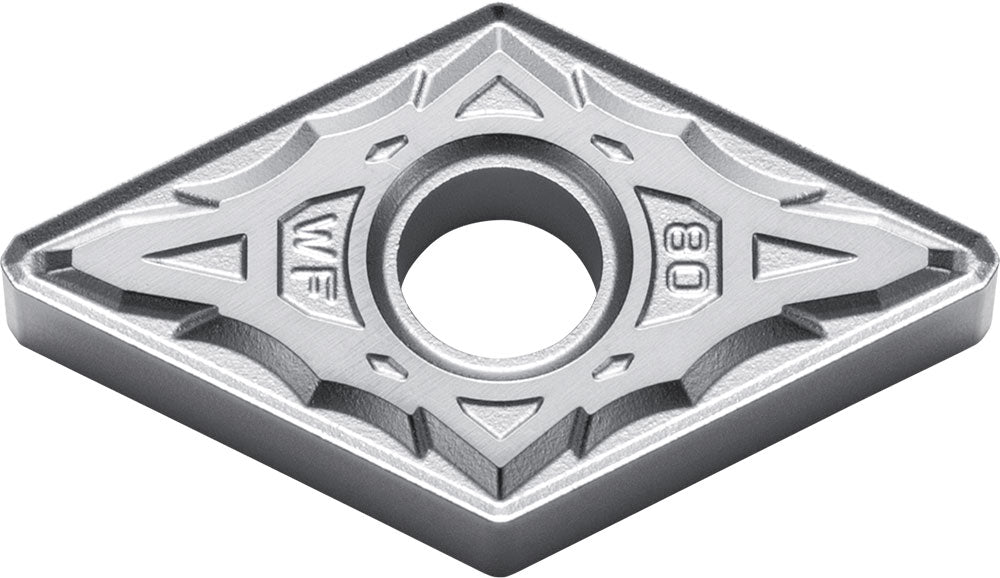 Kyocera DNMX 433WF TN620 Grade Uncoated Cermet, 0 Degree, Diamond, Negative Rake Angle, Neutral Turning Insert for Light Interruption and Finishing in (P) Carbon/Alloy Steel