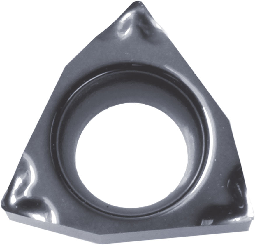 Kyocera WBGT 12105MPLCF PR1725 Grade PVD Carbide, 5 Degree, Trigon, Positive Rake Angle, Left-Hand Turning Insert for Light Interruption and Finishing in (P) Carbon/Alloy Steel and (P) Free-Cutting Steel, (M) Stainless Steel