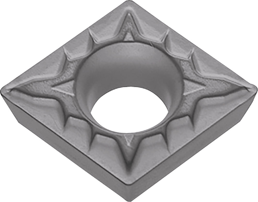 Kyocera CPMT 321XP TN610 Grade Uncoated Cermet, 11 Degree, Diamond, Positive Rake Angle, Neutral Turning Insert for Continuous and Finishing in (P) Carbon/Alloy Steel