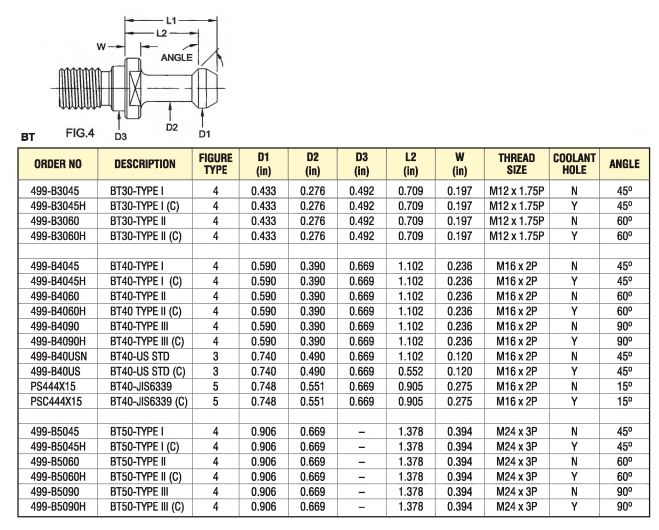 499-B5090H BT50 Type III Retention Stud W/Coolant Hole