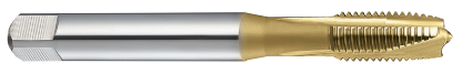 YG 7/16-14 H5 Synchro TIN Coated PM Spiral Point Plug Tap with 4-5 Pitch Lead. Can be run at 2-3 times faster in a Synchro Tap Holder but will also improve Tap Life in a Rigid Holder at Same Speed.