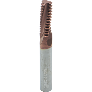 #Flutes:3, Cut Dia:0.375", Cutter Len:1.04", Grade:MT7, IN-RH/LH, Matl:Carbide, Overall Len:3.0", Pitch:12.00 TPI, Shank Dia:(3/8)", Thread Form:UN, Thread Standard:(9/16)