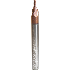 #Flutes:3, Cut Dia:2.2mm, Cutter Len:5.3mm, Grade:MT7, IN-RH/LH, Matl:Carbide, Overall Len:58mm, Pitch:00.50mm, Thread Standard:M4,M3