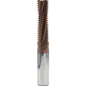 #Flutes:4, Cut Dia:14.0mm, Cutter Len:48.8mm, Grade:MT7, IN-RH/LH, Matl:Carbide, Overall Len:105mm, Pitch:02.50mm, Thread Standard:M18,M20