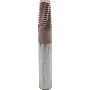 #Flutes:4, Cut Dia:16.0mm, Cutter Len:27.6mm, EX/IN-RH/LH, Grade:MT7, Matl:Carbide, Overall Len:105mm, Pitch:11.50 TPI, Thread Form:NPTF, Thread Standard:1-2