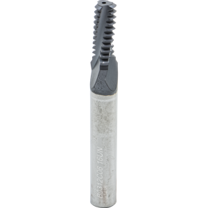 #Flutes:3, Cut Dia:0.13", Grade:MT9, IN-RH/LH, Matl:Carbide, Neck Len:0.35", Overall Len:2.5", Pitch:36.00 TPI, Shank Dia:(1/4)mm, Thread Dep:2.0xD1, Thread Form:UN, Thread Standard:8