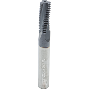 #Flutes:3, Cut Dia:0.13", Grade:MT9, IN-RH/LH, Matl:Carbide, Neck Len:0.35", Overall Len:2.5", Pitch:36.00 TPI, Shank Dia:(1/4)mm, Thread Dep:2.0xD1, Thread Form:UN, Thread Standard:8