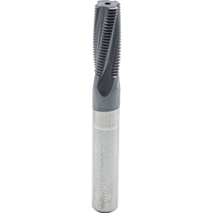 #Flutes:3, Cut Dia:0.13", Grade:MT9, IN-RH/LH, Matl:Carbide, Neck Len:0.35", Overall Len:2.5", Pitch:36.00 TPI, Shank Dia:(1/4)mm, Thread Dep:2.0xD1, Thread Form:UN, Thread Standard:8