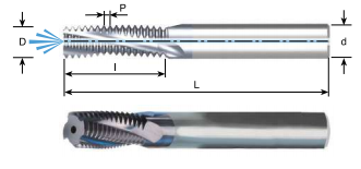 #Flutes:3, Cut Dia:0.146", Grade:MT9, IN-RH/LH, Matl:Carbide, Neck Len:0.59", Overall Len:2.5", Pitch:32.00 TPI, Shank Dia:(1/4)mm, Thread Dep:3.0xD1, Thread Form:UN, Thread Standard:10