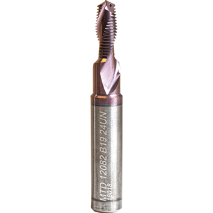 #Flutes:3, Cut Dia:0.13", Grade:MT9, IN-RH/LH, Matl:Carbide, Neck Len:0.35", Overall Len:2.5", Pitch:36.00 TPI, Shank Dia:(1/4)mm, Thread Dep:2.0xD1, Thread Form:UN, Thread Standard:8