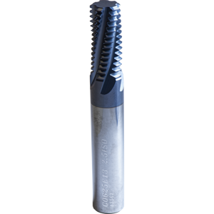 #Flutes:3, Cut Dia:0.13", Grade:MT9, IN-RH/LH, Matl:Carbide, Neck Len:0.35", Overall Len:2.5", Pitch:36.00 TPI, Shank Dia:(1/4)mm, Thread Dep:2.0xD1, Thread Form:UN, Thread Standard:8