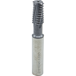 #Flutes:4, Cut Dia:0.63"/16.0mm, Cutter Len:1.77"/45.0mm, Grade:MT7, IN-RH/LH, Matl:Carbide, Overall Len:4.1"/105mm, Pitch:03.00mm, Thread Form:ISO, Thread Len:1.18"/30.0mm, Thread Standard:M22