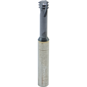 #Flutes:3, Cut Dia:0.13", Grade:MT9, IN-RH/LH, Matl:Carbide, Neck Len:0.35", Overall Len:2.5", Pitch:36.00 TPI, Shank Dia:(1/4)mm, Thread Dep:2.0xD1, Thread Form:UN, Thread Standard:8