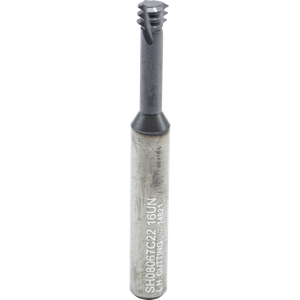 #Flutes:3, Cut Dia:6.7mm, Grade:MT9, IN-RH/LH, Matl:Carbide, Neck Len:22.0mm, Overall Len:64mm, Pitch:16.00 TPI, Thread Dep:2.0xD1, Thread Form:UN, Thread Standard:(3/8)