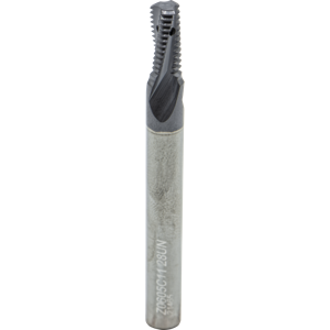 #Flutes:3, Cut Dia:0.13", Grade:MT9, IN-RH/LH, Matl:Carbide, Neck Len:0.35", Overall Len:2.5", Pitch:36.00 TPI, Shank Dia:(1/4)mm, Thread Dep:2.0xD1, Thread Form:UN, Thread Standard:8