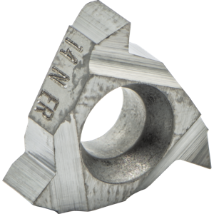 #Edges:3, #Teeth:1, CentrLn to Cut Edge:0.03"/0.8mm, Cut Edge to Matl:0.04"/1.0mm, EX-RH, Grade:K20, IC:(1/4)", Insert Size:11mm, Matl:Carbide, Pitch:14.00 TPI, Thread Form:NPT, w/o Chipbreaker