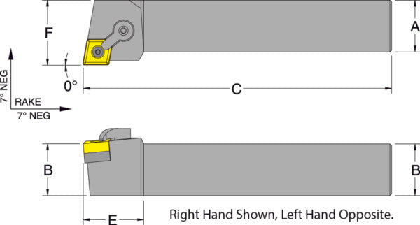50048 MCGNR16-5D. Neg 80DEG Diamond Toolholder RH. Style G, 0DEG CNM_ 5/8 I.C.