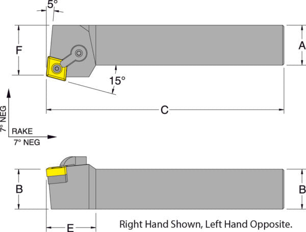 DCLNR124B Square Shank Double Clamp Holder Toolholder: 3/4" Shank for CNMG43_ Insert