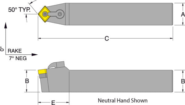 50288 MCYNN24-6E. Neg 80DEG Diamond Toolholder NH. Style Y, 50DEG CNM_ 3/4 I.C.