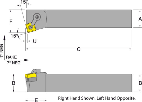 50457 MSKNL16-4D. Neg Square Toolholder LH. Style K, 15DEG SNM_ 1/2 I.C.