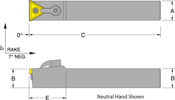 50674 MTCNN64-4D. Neg Triangle Toolholder NH. Style C, 0DEG TNM_ 1/2 I.C.