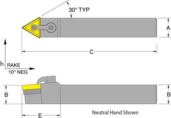 50708 MTENN20-5E. Neg Triangle Toolholder NH. Style E, 30DEG TNM_ 5/8 I.C.