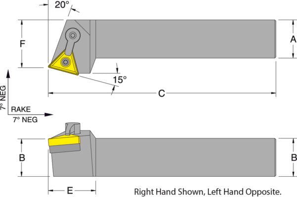 50980 MTRNR16-4D. Neg Triangle Toolholder RH. Style R, 15DEG TNM_ 1/2 I.C.