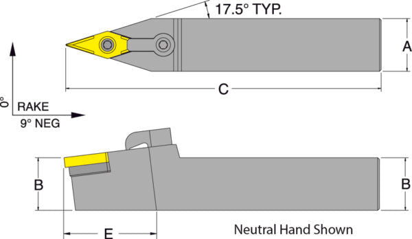 51168 MVVNN16-4D. Neg 35DEG Diamond Toolholder NH. Style V, 17.5DEG VNM_ 1/2 I.C.