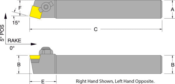 51308 CSBPR12-4B. Pos Square Toolholder RH. Style B, 15DEG SPG 1/2 I.C.
