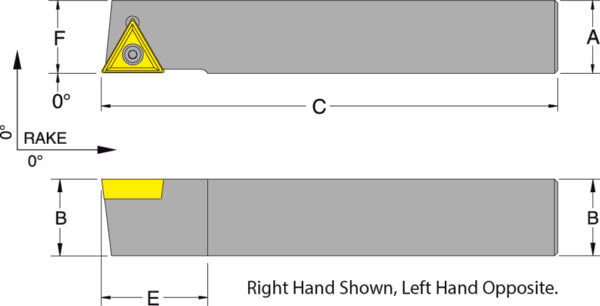 51560 STACR10-2A. Pos Triangle Toolholder RH. Style A, 0DEG TCMT 1/4 I.C.